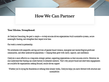 We know that securing funding and building sustainable programs can feel overwhelming—but it doesn’t have to be. At Catalysta Consulting, we make the process clear, straightforward, and tailored to your mission.